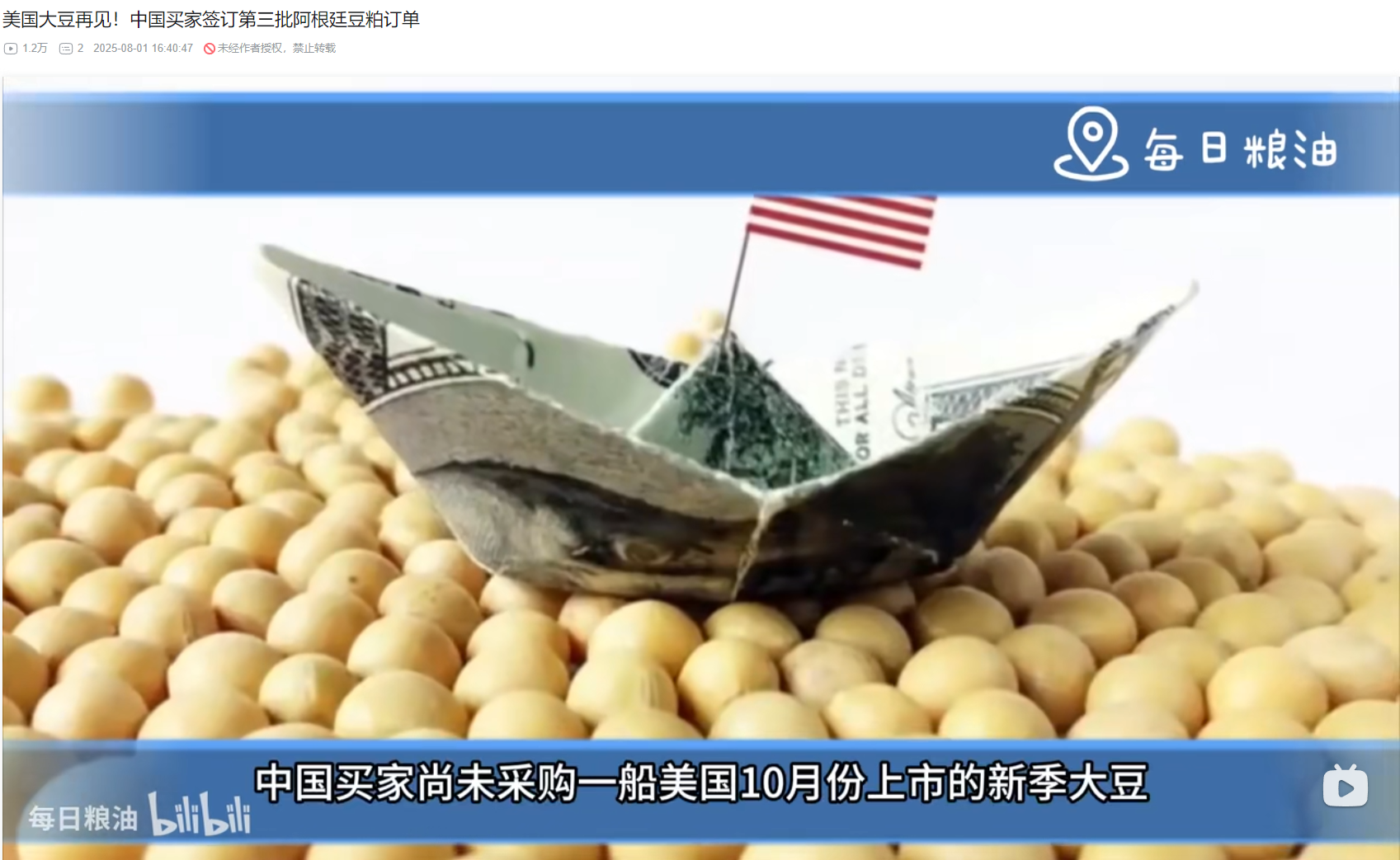我想知道,在近俩月进口美国大豆数量约等于零的情况下,按懂王说的,大豆采购量提高四倍,是多少,有木有一万吨。 中美打贸易战的一个很大不同时,比起什么加关税,闹钟对于农产品、油气这种大宗商品,就是一个指导文件下来,进口量清零,就没打算挣那点关税。一帮目田还搁那帮懂王赢芬太尼关税那点数字上的口舌之利。 发布于 2025-08-12 18:19・河南 赞同 18419 条评论分享 收藏喜欢 收起