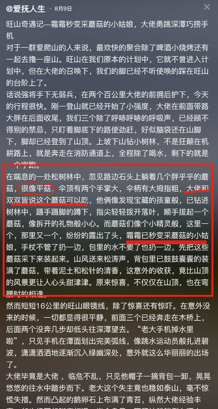 (当然,这几年随着小红书等平台的推波助澜,“有腿就能走”等口号的甚嚣尘上,徒步圈也是五十步笑百步,甚至可以说户外知识的科普是倒退的。这位苏州“越野跑大神”恰恰是在徒步过程中采集的毒蘑菇……)