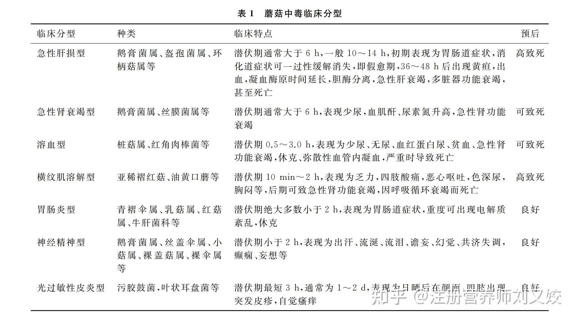 急性肝损型、急性肾衰竭型、溶血型、 横纹肌溶解型、胃肠炎型、神经精神型、光过敏皮炎型,其他 比如知乎上流传最广、吃了会见小人的牛肝菌。临床上对应的是“神经精神型”。