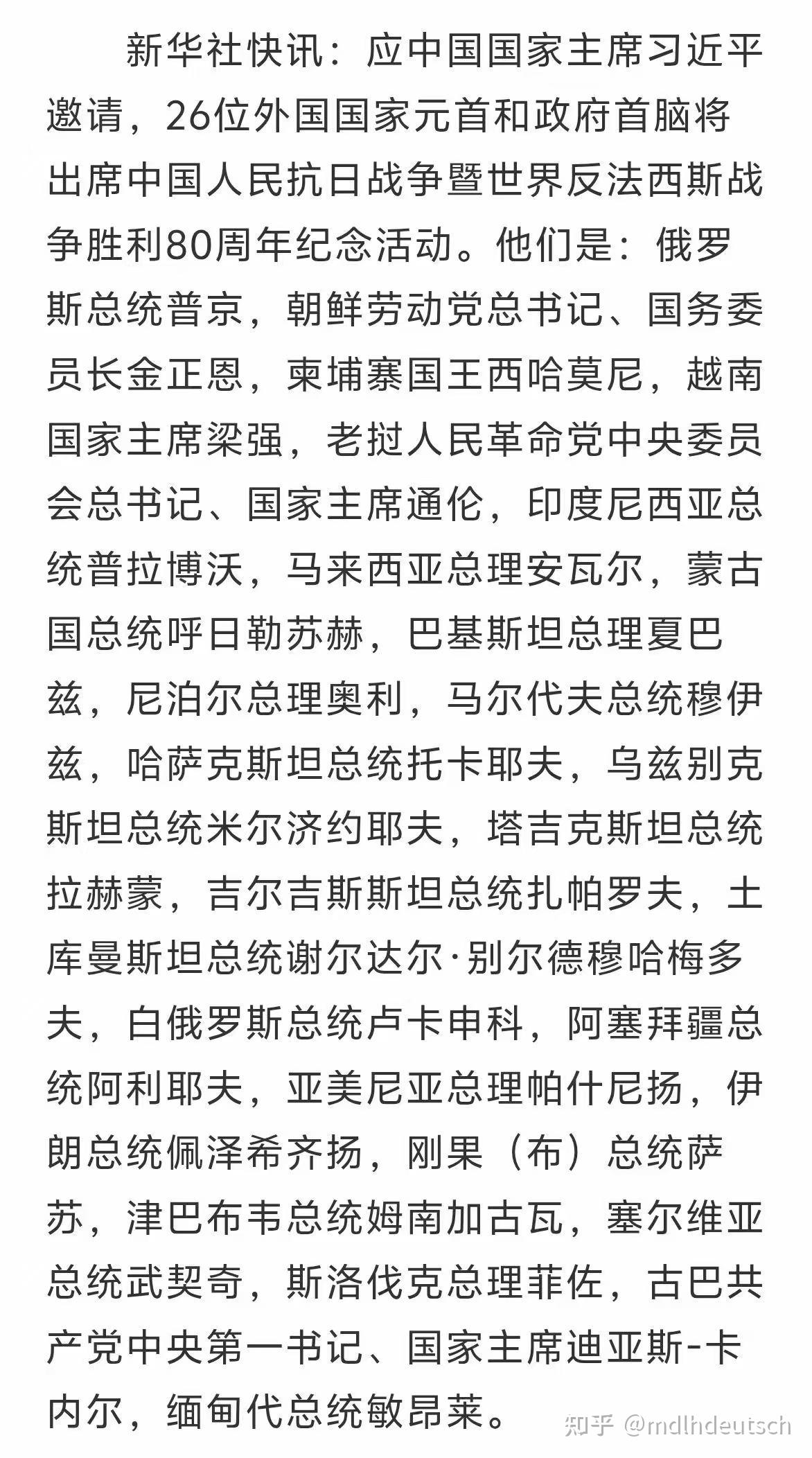 然后我们看 东南亚!!!!!现在网上有一堆小作文带节奏,说 泰国没来。这是纯粹 没文化!!!!!泰国 在二战期间是和日本合作的同盟。你们觉得 这能邀请吗?邀请不就是 直接抽嘴巴子一样!!!!然后就是菲律宾了,这个不用说了吧。铁杆反中!!!