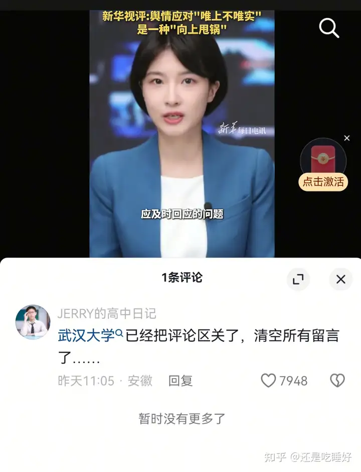 与此同时,武大新生群、武汉大学吧、知乎、小红书等多处出现武大护校蛆,罔顾事实维护学校,网友怒气+10086,这也是我为什么能持续战斗在吃瓜一线。