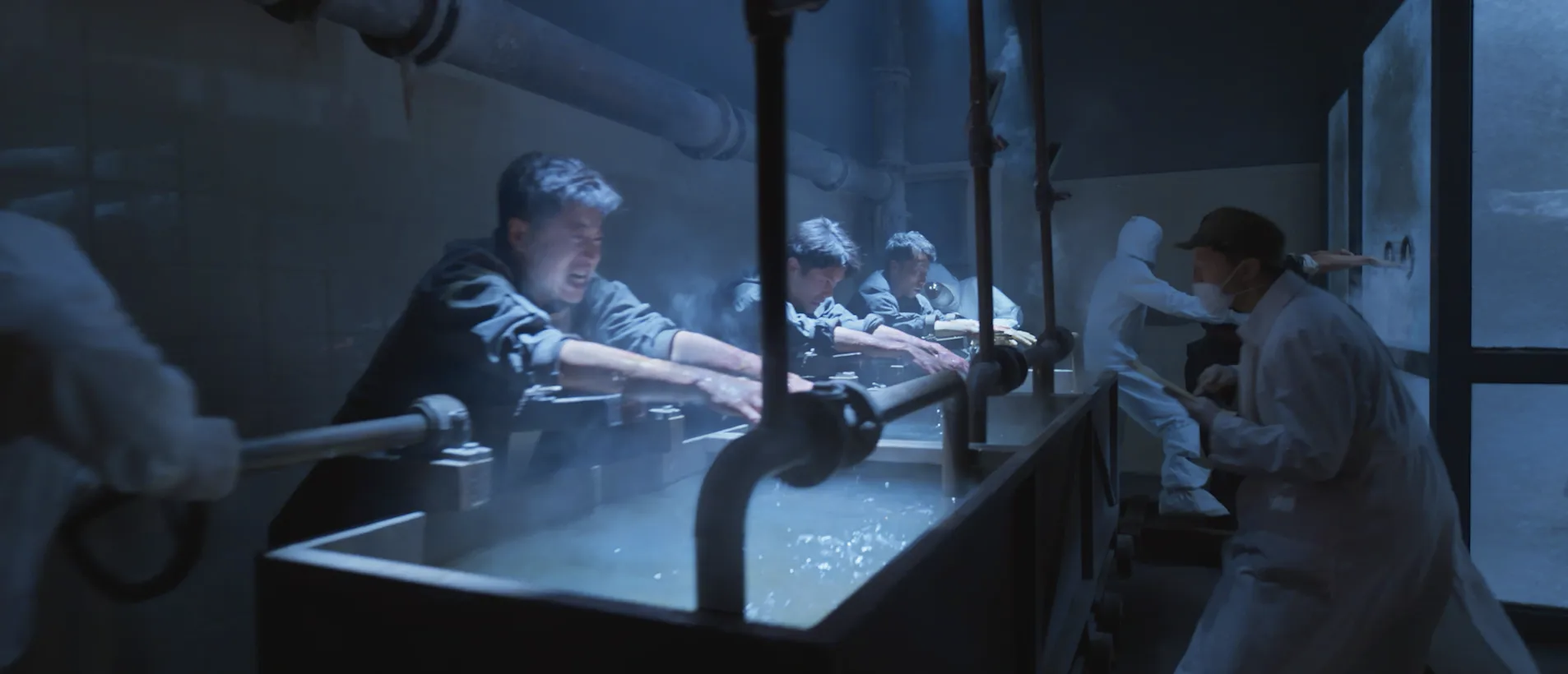 我们不妨再大胆猜想一下,设施齐全的房间,远超时代背景的配套设施,全然当代审美的选角,广播里和《鱿鱼游戏》一二三木头人几乎一模一样的小女孩声线......很可能这片子一开始就想照搬鱿鱼游戏拍个鲅鱼游戏,结果立项阶段觉得沾了731更好卖钱,于是借731历史的壳上市。