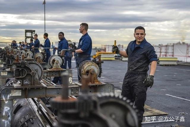 弹射器清洗,是一件非常辛苦且耗时耗力的工作,美海军航母上要常年保持200多人的甲板兵编制,在战时可能更多,海湾战争时期,为了保证航母不间断的出动率,尼米兹航母甚至一次动用了800人对航母弹射器进行维护。