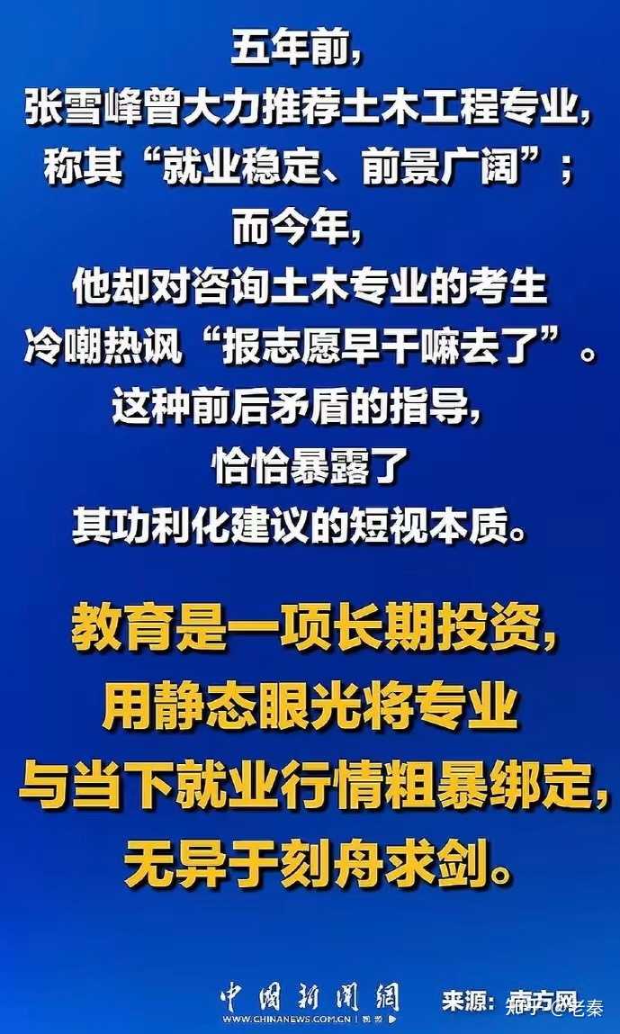 专业不跟当下就业绑定,那还跟什么绑定?这么批张雪峰,等于是承认他的专业咨询能让人避开现在已经完蛋了的行业,对普通没有门路和信息优势、但寒窗苦读分数又还过得去的考生简直是大功德。