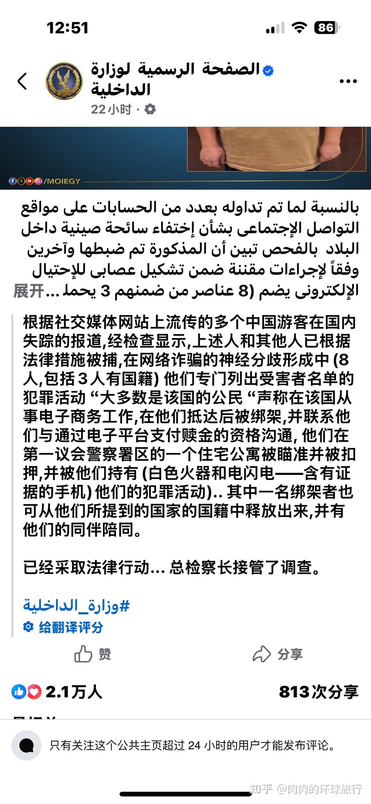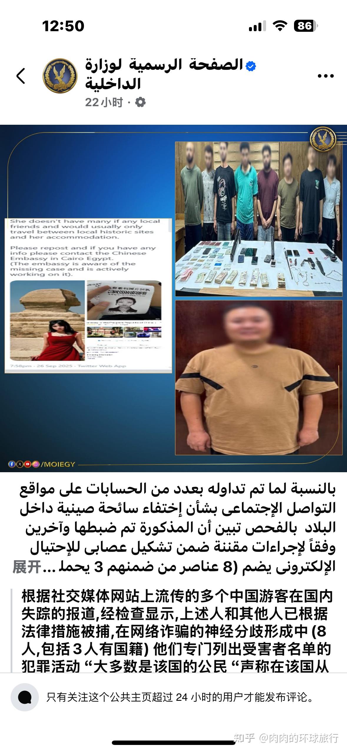 这事一再反转真挺逗的 一开始刚爆出寻人帖子时还有一堆人说什么 女生一个人去穆斯林国家不安全什么的 说埃及乱 危险