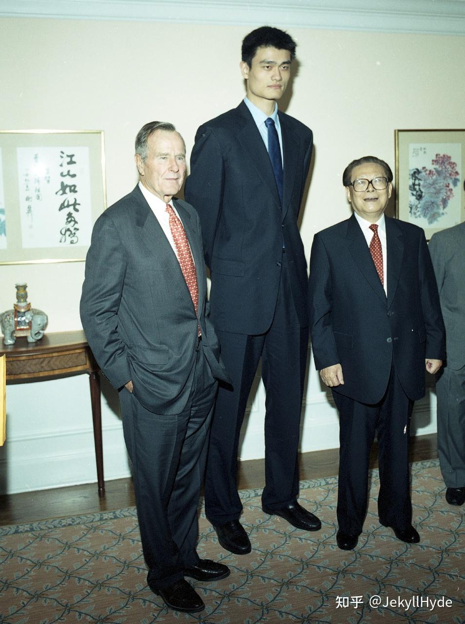 2002年10月中国访美,前美国主席兼驻华大使老布什在新落成的布什图书馆接待他,刚到火箭队不久的姚明作为嘉宾应邀出席。老布什总统拉着姚明合影,对他说: