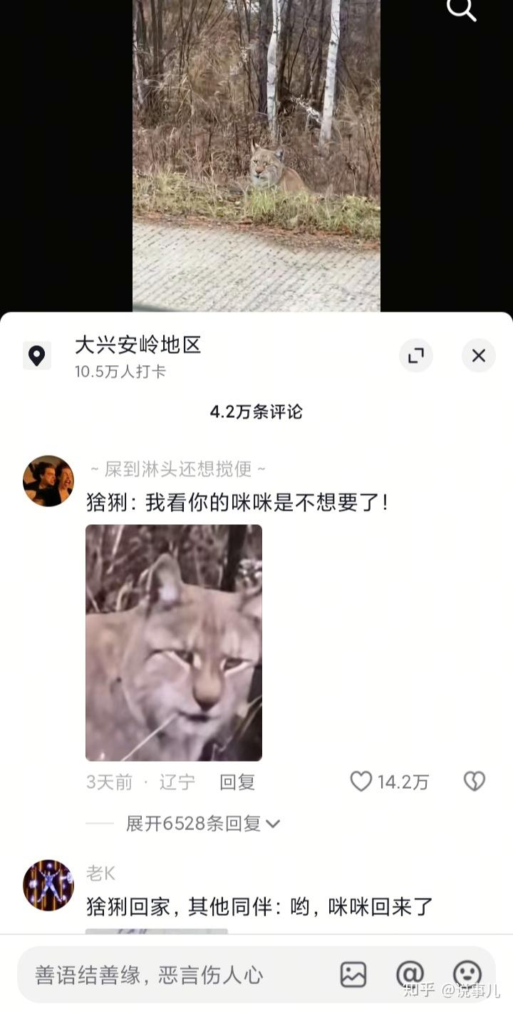 看视频里说到是猞猁的时候,一个男声很急地说“关上关上关上窗”,没错,急得都快结巴了。