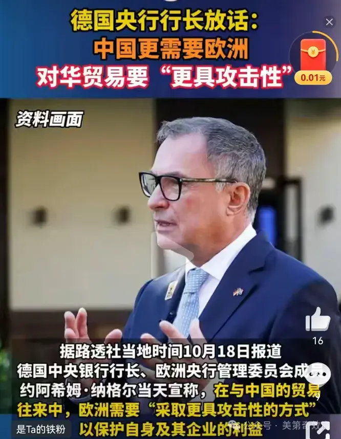 比如李成刚今年4月刚刚接替王受文上任国际贸易谈判代表的时候,西方和咱们的某些人就在热炒,把原来鹰派王代表,换成鸽派的李代表,说明东方要认怂。只不过这个他们口中的鸽派,把贝森特气到吐血之后,在他们的叙事中,摇身一变又变成无脑“战狼”了。这点上,西方舆论非常善于“精神分裂”,一方面鼓吹自己这边的高官必须“更有攻击性”,必须更善于“咬人”。而面对东方同样的鹰派官员,则抹黑成破坏双边关系的“战狼外交”。