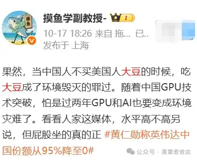 只不过,要斗争求团结,那些今天鼓噪“十二道金牌”的肉喇叭们,必须尽快处理。很多堡垒都是从内部被攻破的,很多毒计都是自己人想出的。比如遏制中国造船业的“美国特别港务费”,就是拜登当局找的哪个华人贸易代表,戴琪提出的。只不过在懂王任上被实施了而已。如果戴琪还算华裔美国人,能沾个“各为其主”。那下边这种,简直就是吃饭砸锅。东方最近不买美国的大豆,突然之间,吃大豆就变成了破坏环境的大罪过,好像亚马逊丛林都要因为中国人炒菜多放一勺油而被毁灭了。
