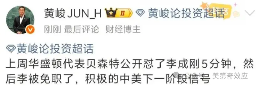 这个新闻,一下子捅了马蜂窝,某些人群开始弹冠相庆,另外一些人则搬出了“台阶论”:贝森特公开抱怨甚至咒骂了五分钟,结果真的起效了,东方给美国人奉上了一个台阶。