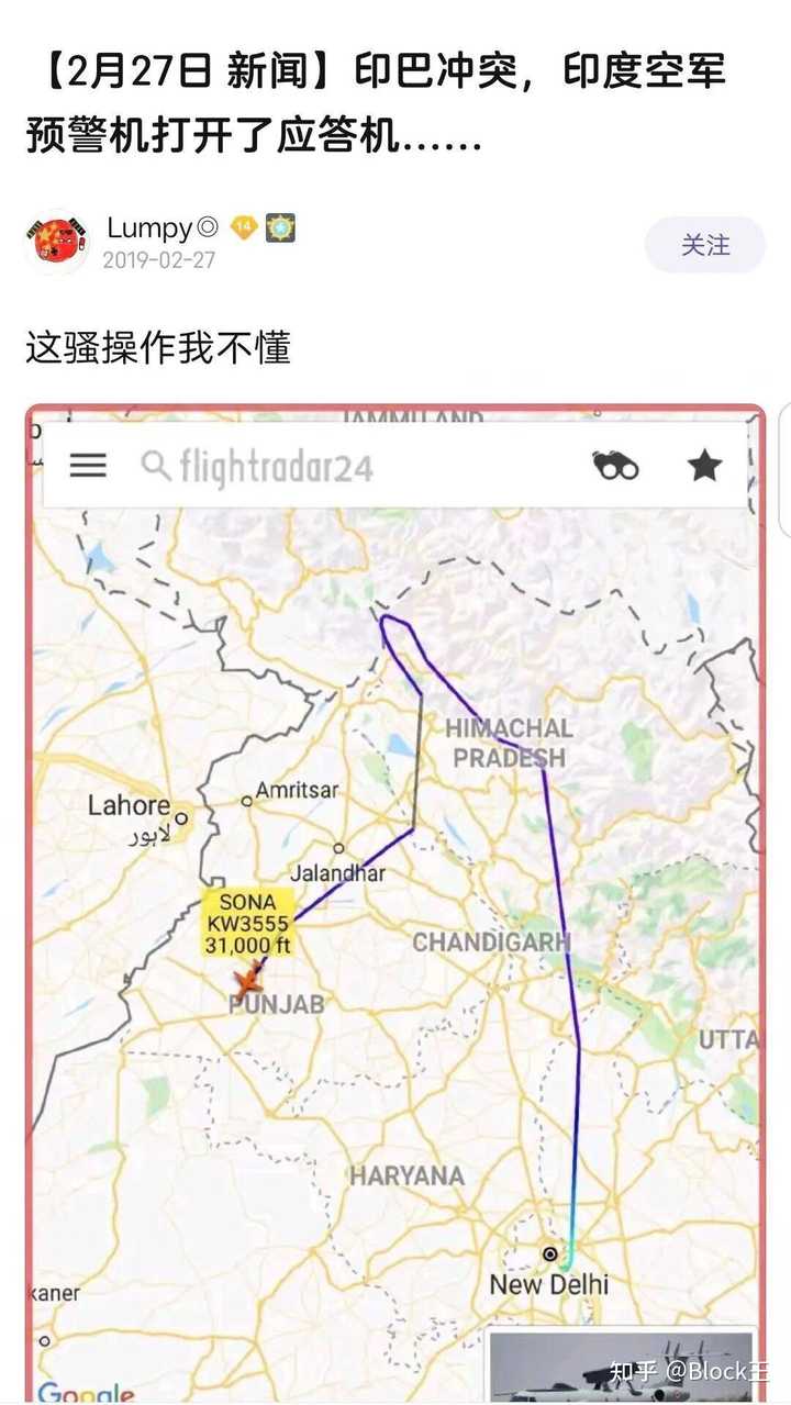 然后印度的费尔康预警机出动了,这个预警机上天侦查的时候,不知道怎么的忘了把这个就在手边上的adsb关了。(这个预警机是巴西生产的民航客机改装的东西,adsb那些有保留也很正常)