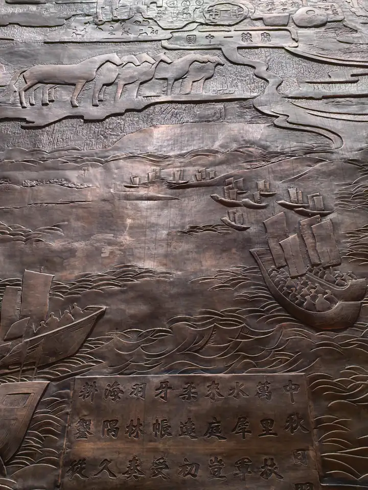 新建成的中国考古博物馆,在气派的时间大道尽头,有一副巨大的铜板浮雕,刻画着中国五千年历史,这个浮雕位于国家级展馆正中心,其内容是经历过层层审核的。