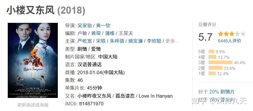 而《沉》之前最近的一部编剧作品《小楼又东风》,2018年播出,豆瓣评分仅有5.7分;