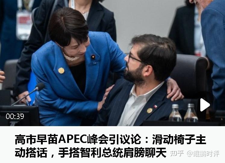 随后在韩国举行的apec会议上,高市跑去找智利总统搭话,可谁知搭着搭着,手就搭到人家智利总统肩膀上去了。
