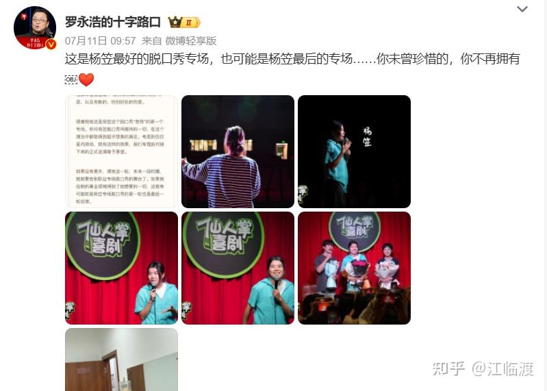 回溯至7月11日,罗永浩发布长文点评杨笠脱口秀专场时曾透露,若无意外,演完本轮全国(全球)巡演后,她将在未来一段时期告别职业专场脱口秀舞台,若新事业领域发展顺利,这可能成为其首轮也是最后一轮专场巡演。