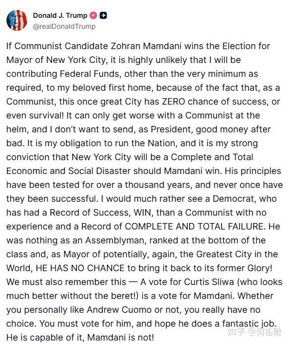 更不可能开身份政治的地图炮,比如说攻击mamdani的穆斯林身份,如果大家想听我讲点一手的学术的我欢迎,如果大家想听情绪暴论输出,出门右转不送。