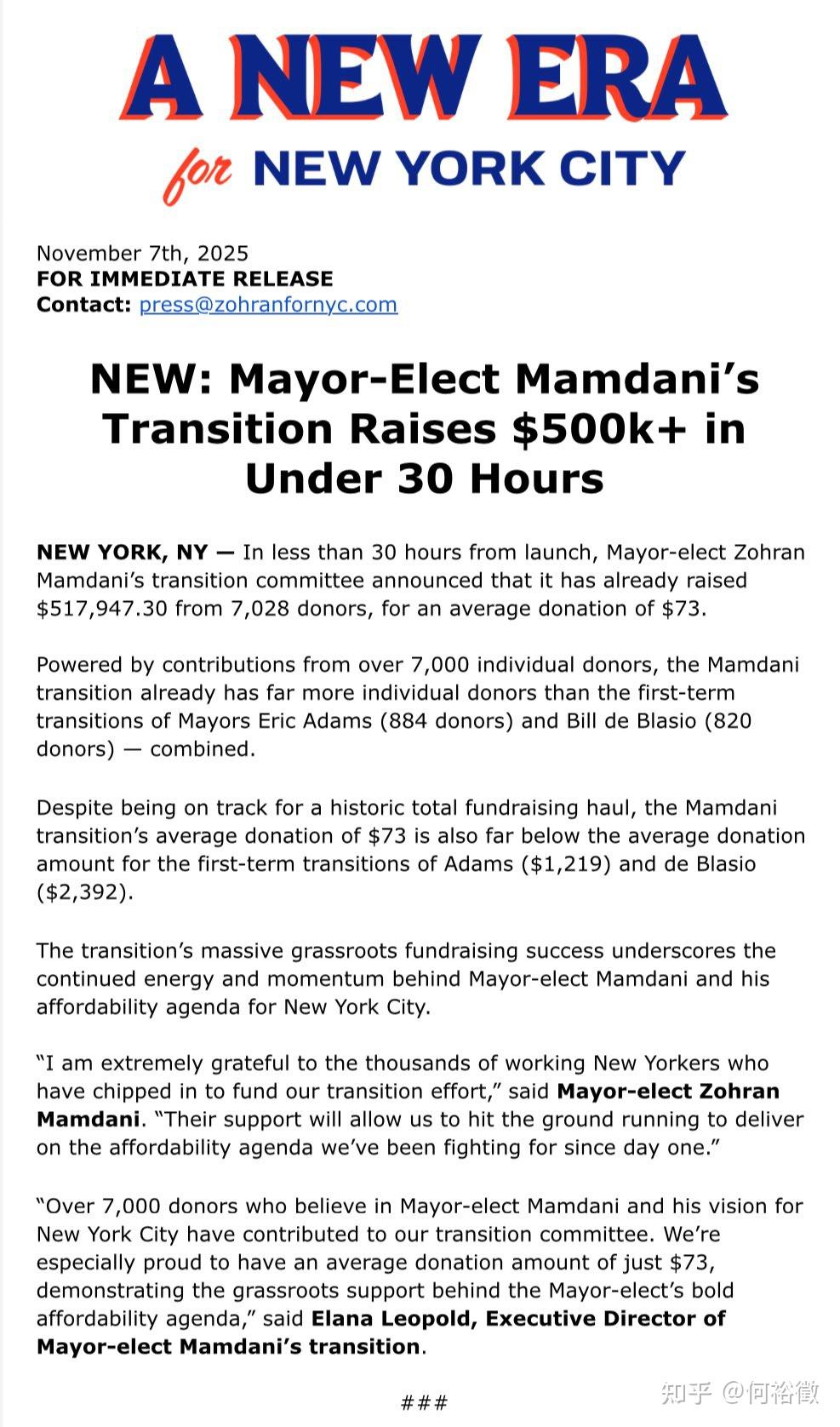 其四,“草根”力量对资本政治的逆袭。据称,马姆达尼的竞选资金中有75%来自于100美元以内的小额捐款,而且马姆达尼的团队擅用TikTok等新媒体平台,将政策主张转化为青年语言,有效激活年轻选民。此外,他将民主社会主义者阵线(DSA)的组织网络与工会运动相结合,构建出“阶级政治+草根动员”的新模式,为民主党未来选战策略提供重要参考。