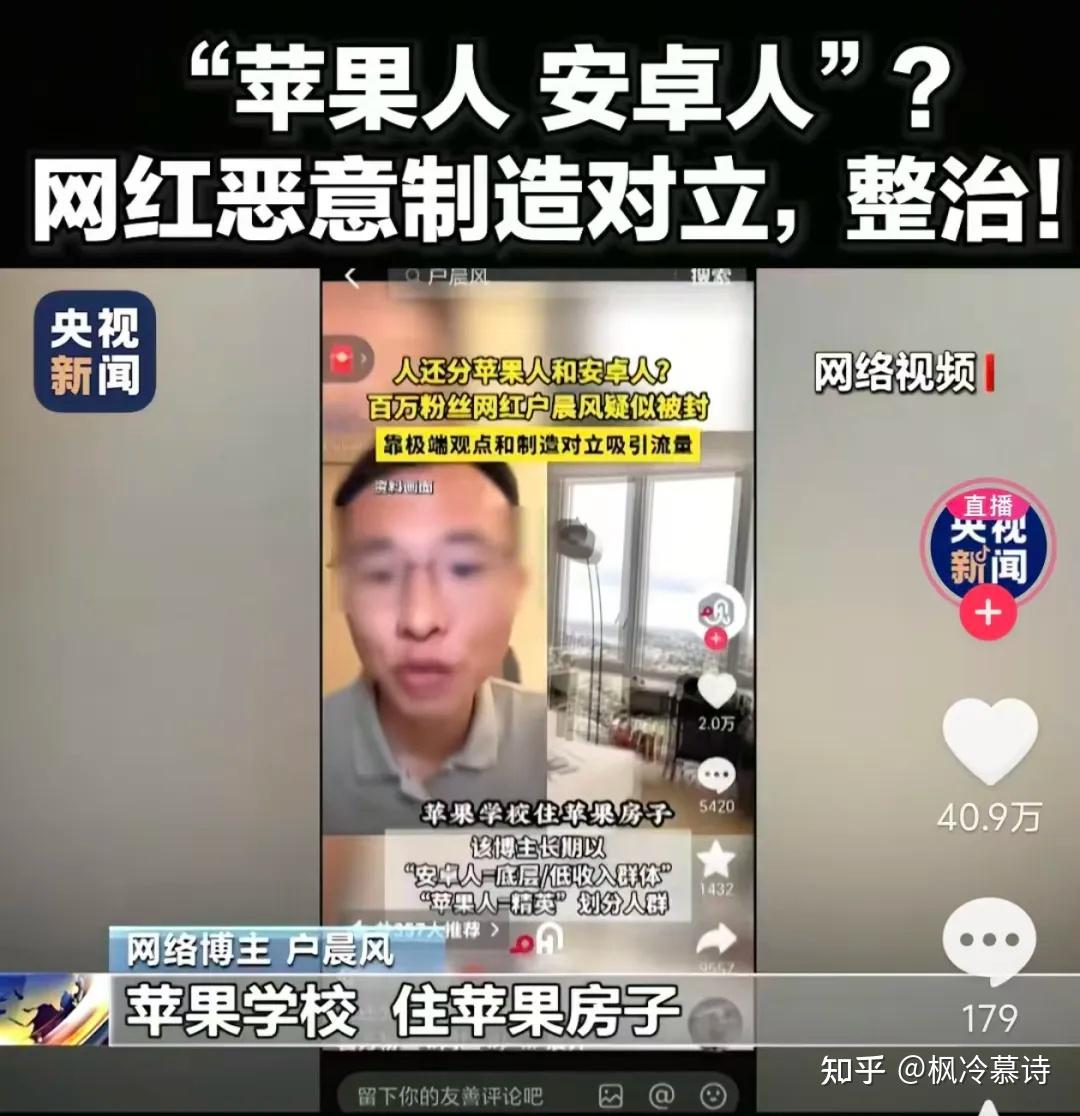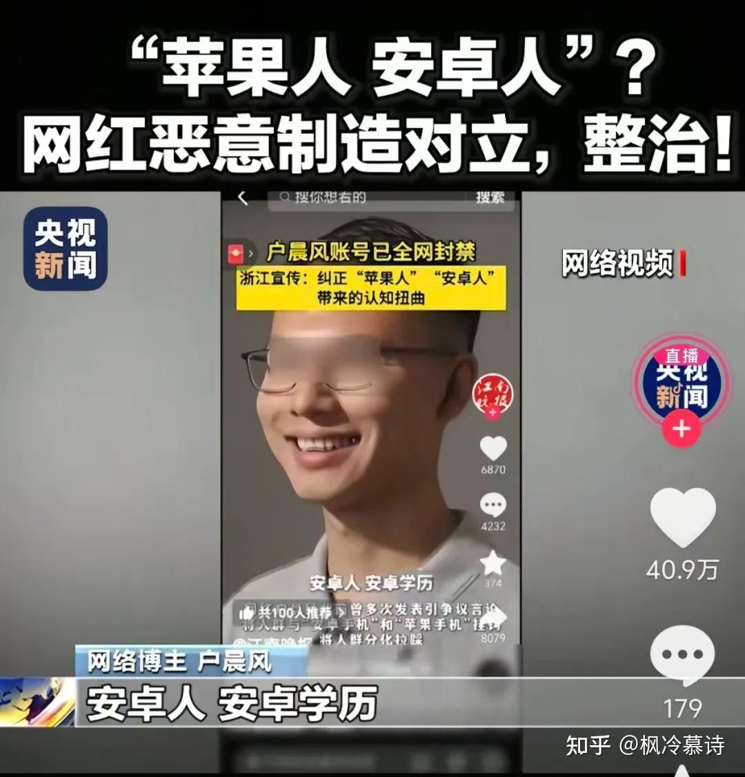 央视披露网红户晨风因「恶意制造对立」被封禁,如何看待其对网络平台生态的影响?