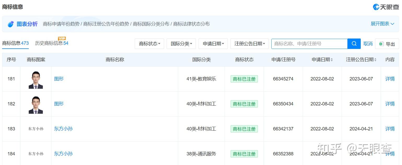 25日,孙东旭在直播中表示:“有朋友说我是王者归来,我不是王者,我就是小孙同学。”知识产权信息显示,东方甄选关联【东方优选(北京)科技有限公司】已成功注册多枚孙东旭照片和东方小孙商标,国际分类涉及教育娱乐、广告销售等。此外,该公司还登记了“东方甄选主播东方小孙卡通形象”美术作品著作权。