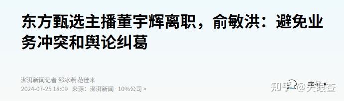 2024年7月25日晚间,东方甄选发布公告,董宇辉从东方甄选离职,“与辉同行”独立运行。