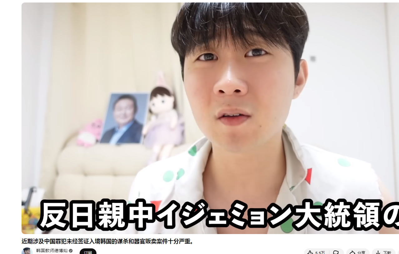 一个日本右翼博主造谣中国人犯罪的视频评论区,会有韩国人用日语说:我是韩国人,我们韩国也遇到大批中国人犯罪,但是现在政府(李在明)是中国人政府,韩国被中国人控制了,我们要一起加油驱逐中国人,夺回国家和土地。