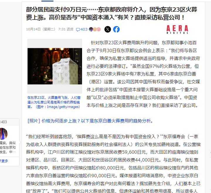 东京博善:火葬费用为何一路飙升?当被问及东京博善涨价的理由时,该公司是这样回应的: