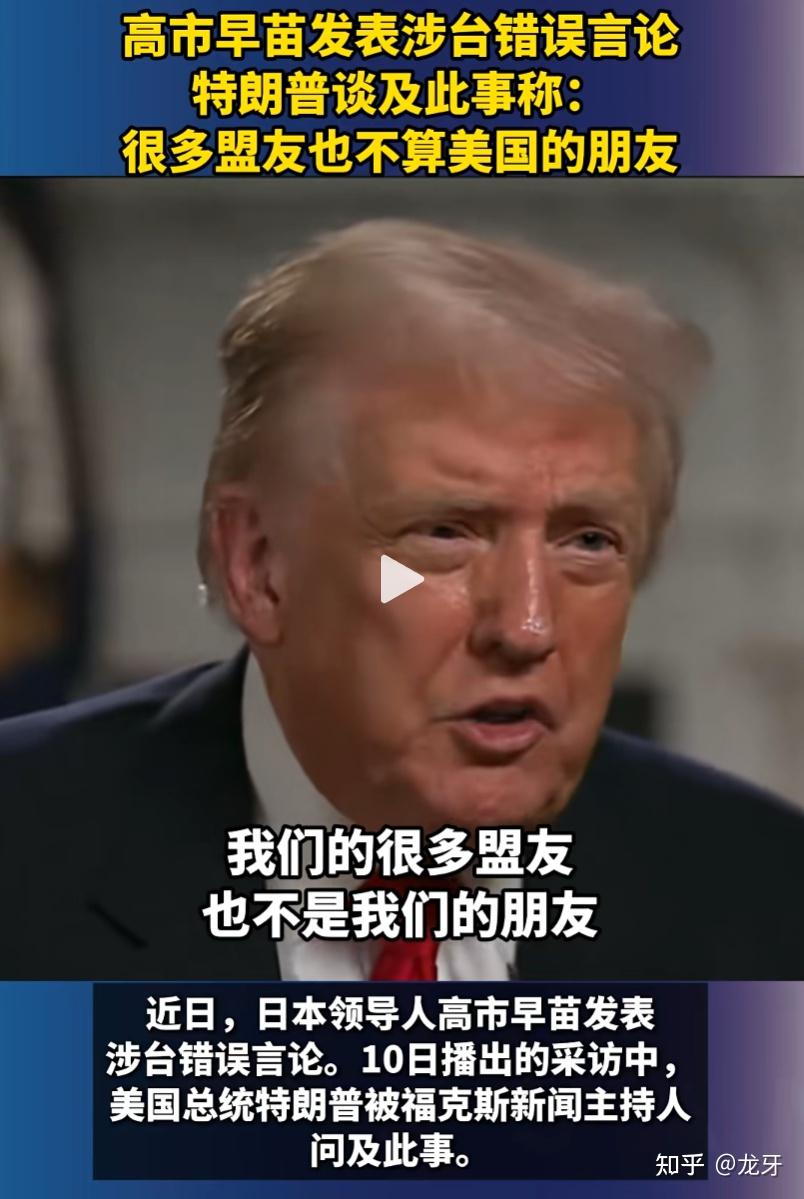 而否决《波茨坦公告》、《联合国宪章》很显然不是他一个总统能够决定的,得美国国会批准。特朗普作为总统,他的发言表态受国会管辖,他这里说“盟友”,就没办法指代日本了。