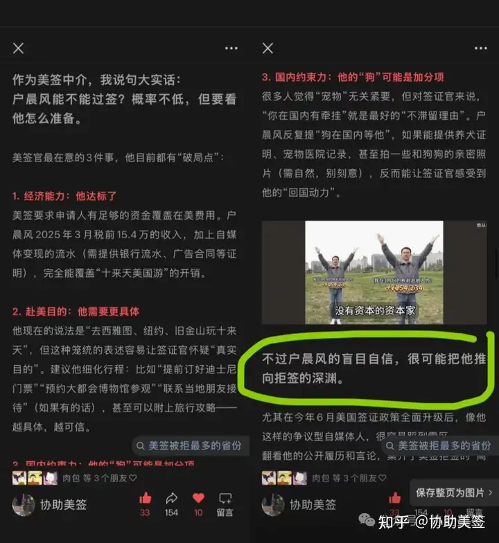 户晨风一直强调自己收入高、有澳签,以为这就是美签通行证。但他忽略了美签最核心的是考察“回国约束力”——你是否有足够的理由证明你会按时回国?