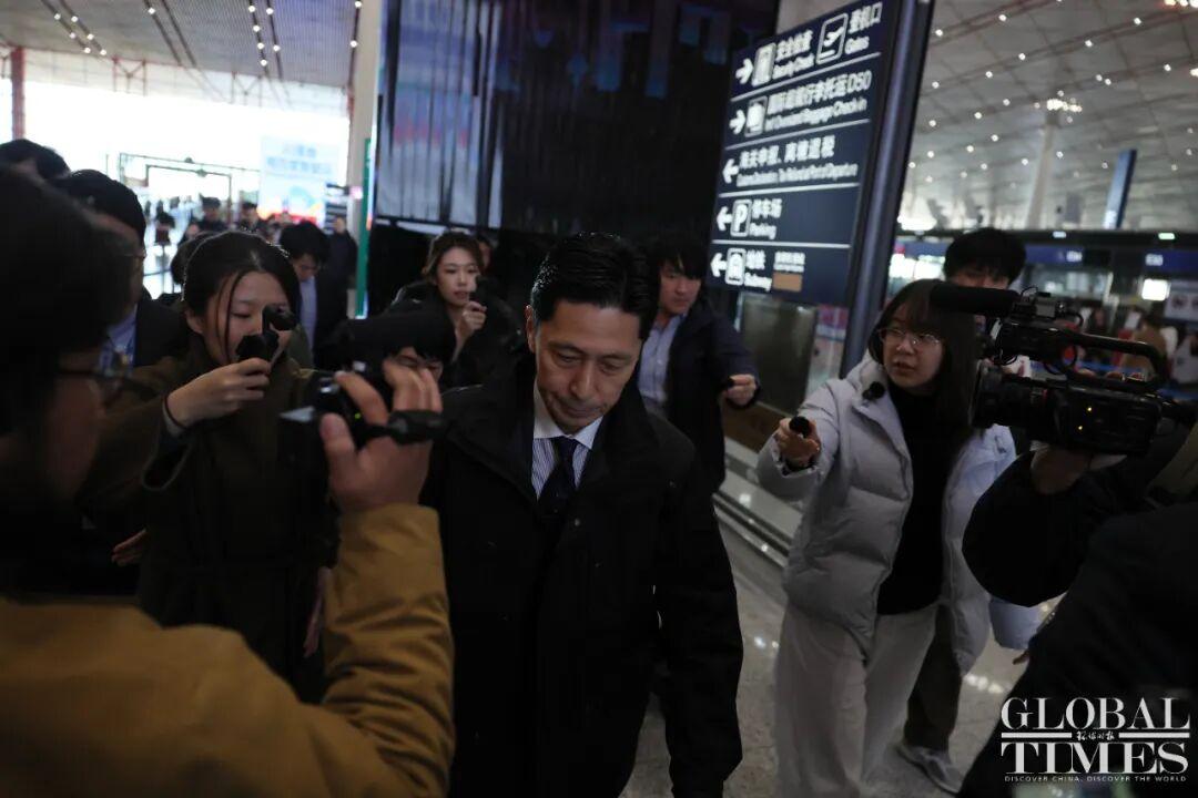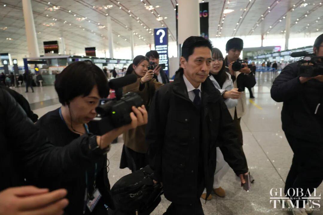 15点30分左右,环球时报英文版记者在机场看到,金井正彰一行离开中国。记者看到,在现场,金井正彰没有回答媒体提问。