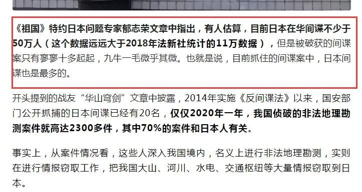 这是近年来的一个典型案例,也是官媒《焦点访谈》等权威栏目罕见地高调披露的日本间谍案。