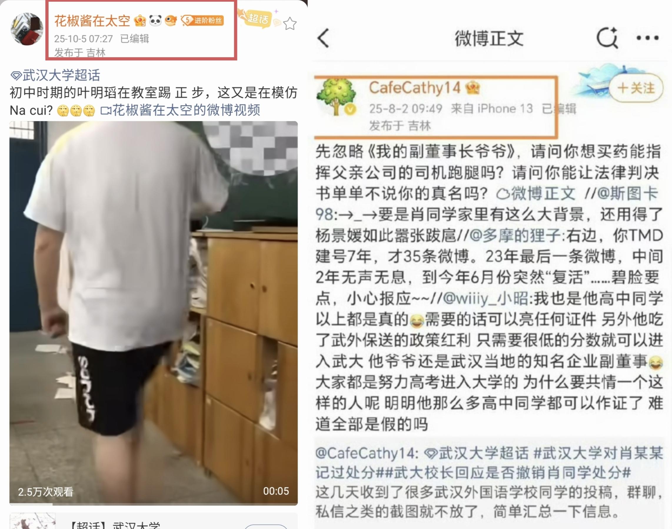 从肖同学所谓搜集二战德国勋章,到高中厕所转笔的虚构模因传播,再到肖同学武大校园飙车等不实指控。这些谣言的源头,几乎都绕不开这位CafeCathy14,也就是花椒酱在太空的精心炮制、推波助澜。