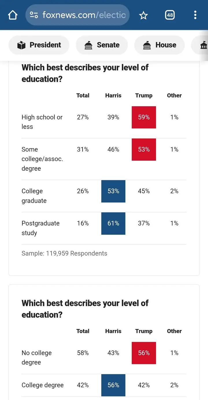可以看出,有大学本科及以上学历的人投哈里斯的比例就已经超过投特朗普的,而具有硕士及以上学历的比例就更高了(Some college/assoc. degree相当于我国的大学肄业或高职大专类院校毕业,而College Degree则是读完至少四年的全日制本科)。而众所周知,航天业是知识密集型行业(不尊重科学不但上不了天还容易出事故),有不少名牌大学毕业生放弃了互联网或金融的高收入来到收入相对(互联网/金融)一般的SpaceX,没点精神上的追求那是不太可能的,因此这群员工中必定存在为数不少的、政治上反对特朗普甚至反对马斯克(但慑于各种原因但不敢明说)的人,他们在当下可以说是美式输学的受众之一了(具体可以见 床师此前的各类相关回答)。 而航天业本身就是极度复杂、对可靠性要求极高的行业,而这群有所不满的员工哪怕主观上没有破坏的意愿,客观上也会因为各种原因松懈、瞎想等等从而导致埋下比正常情况下更多的隐患,甚至导致了今天的超重助推损毁的结果也说不定。