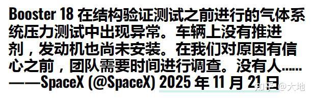 回到事故本身,2025年11月21日凌晨,在美国德克萨斯州博卡奇卡的星舰基地,在进行气体系统压力测试时,B18底部液氧舱段发生结构性坍塌,箭体严重褶皱。