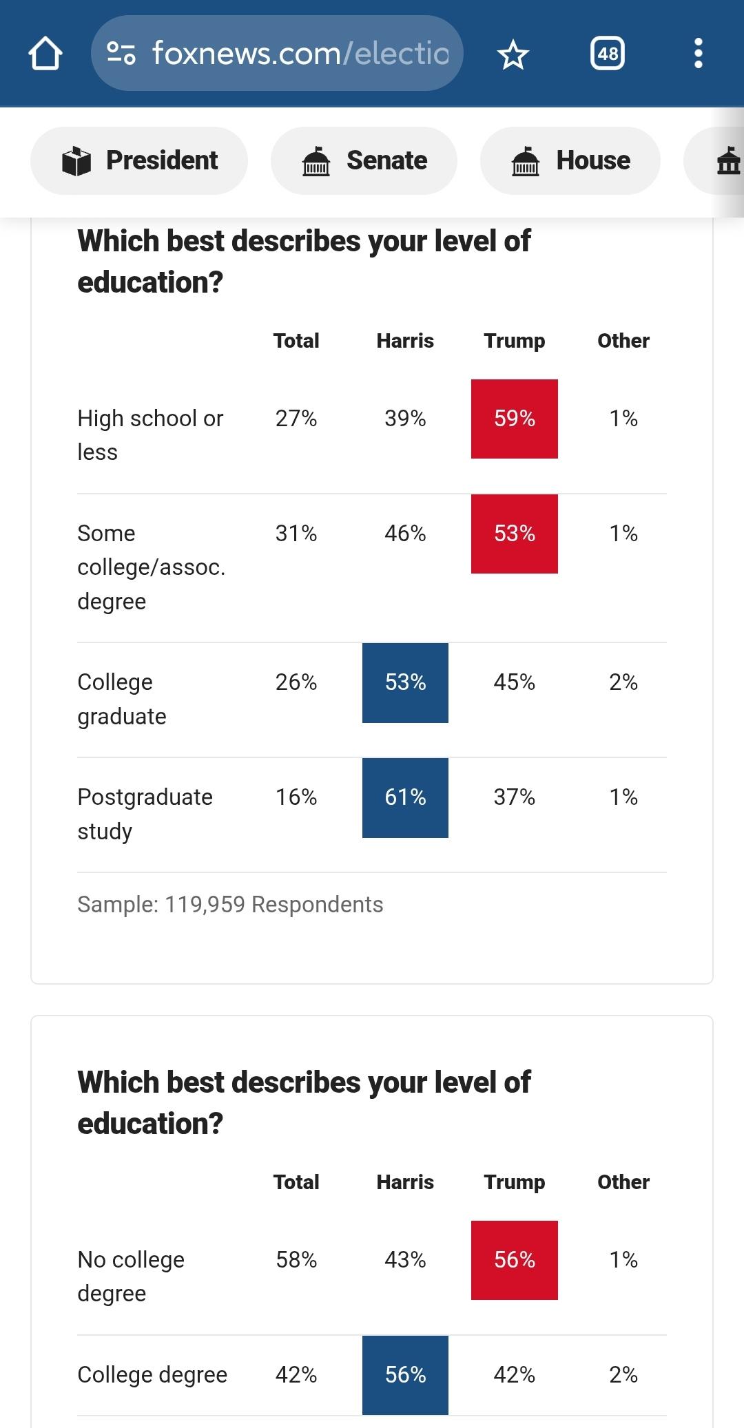 这是去年大选福克斯新闻台的出口民调:
