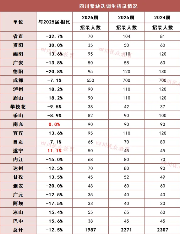 相比于21届的4000多,这几年已经缩了一半以上了(26届最新的只招1987),其实不光是本省,很多地方的选调名额也在收紧。