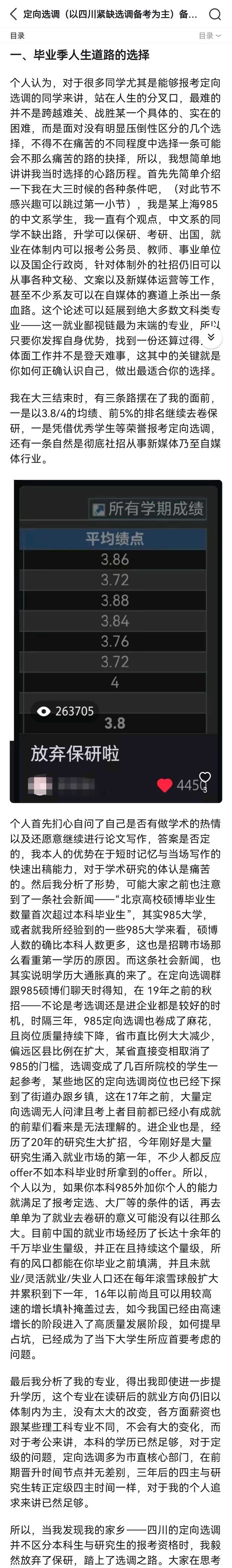 以前的四川定向选调被誉为巡考选手点击就送的保底选项,毕竟有三州跟川东北贫困地市兜底,且基本只有成都难考,即使是发展好的地市,难度也没那么大。