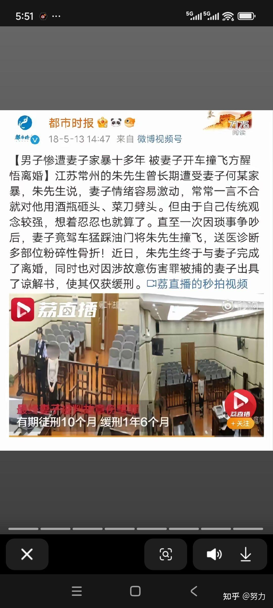 首先说家暴这个事,很多时候都是女的语言暴力加先动手,然后男性被迫反击,类似下边这种案件