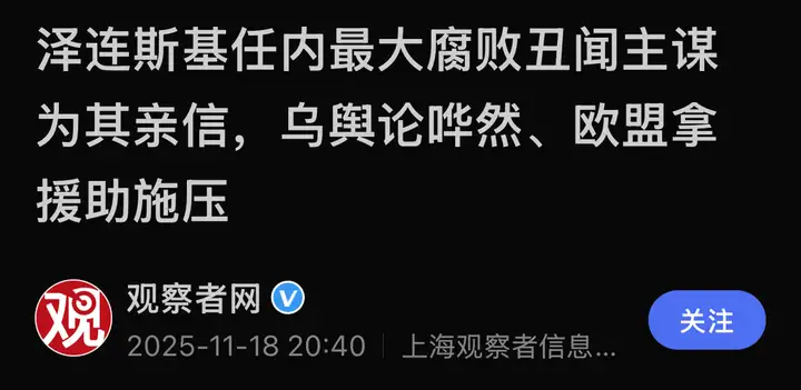 泽连斯基的亲信被查出贪污腐败,其中包含司法部长,而泽连斯基在此之前想强行将独立调查机构并入这位司法部长麾下,遭到了民众乃至欧盟的强烈反对,最终没成功。