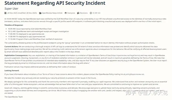 api.openreview.net和api2.openreview.net都打了补丁,封住了这个漏洞。而且发了一份言辞非常“强硬”的声明: