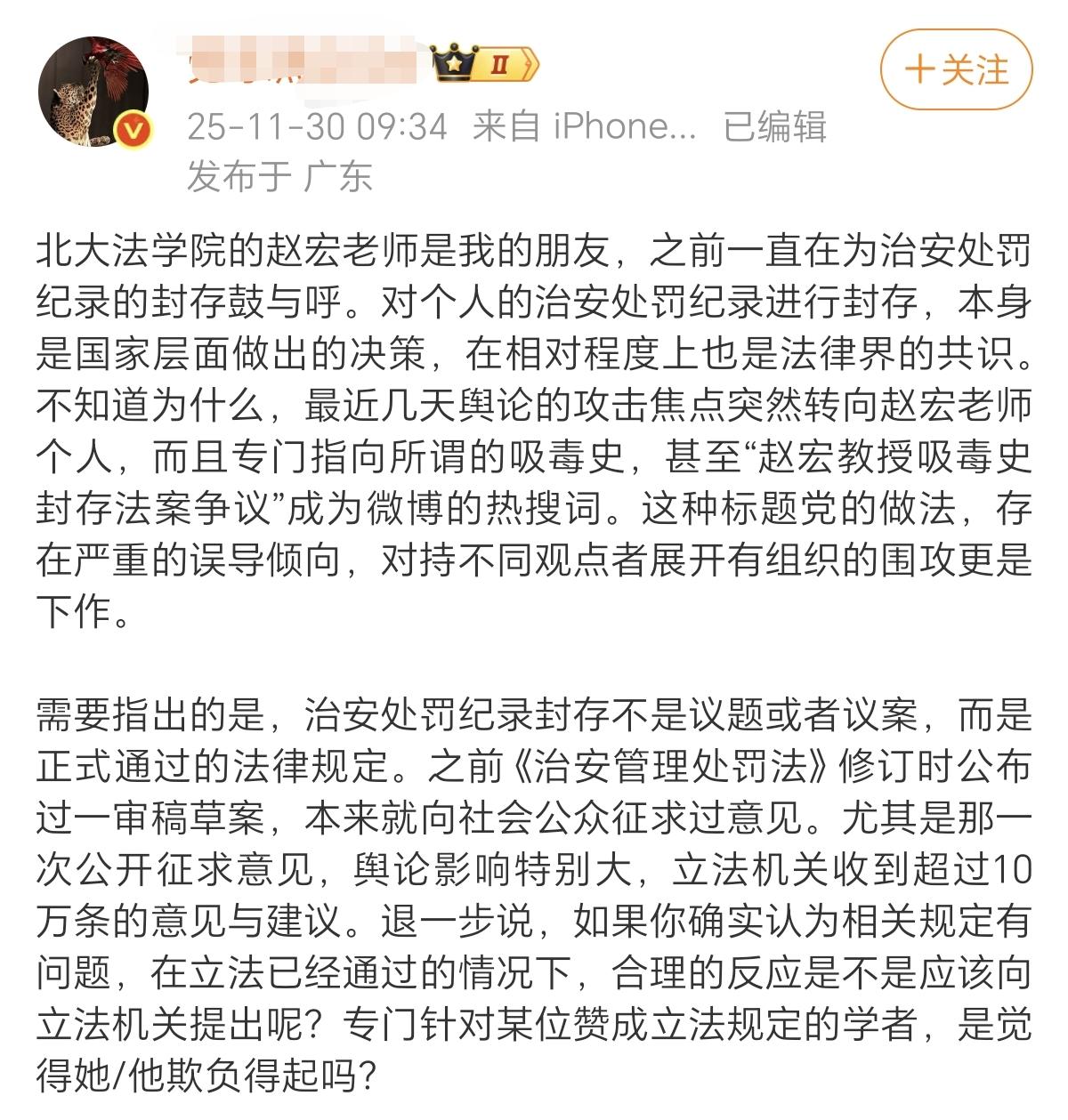 她的好友,同时也是清华法学院教授劳东燕在社交平台哭诉称,对治安违法记录进行封存,相当程度上是法学界的共识,现如今,异见者对其开展有组织的围攻更是下作。