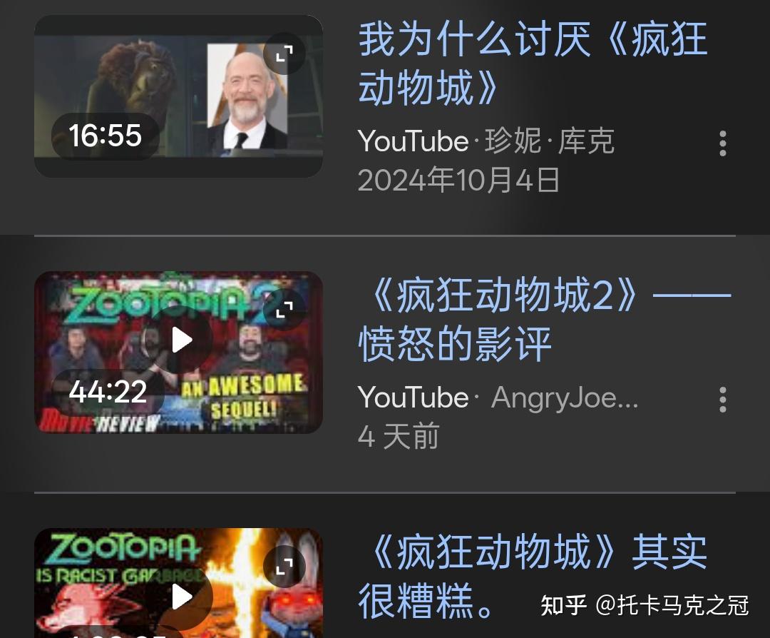 我上youtbe用英语查疯狂动物城,结果给我推送的几个视频都是骂的