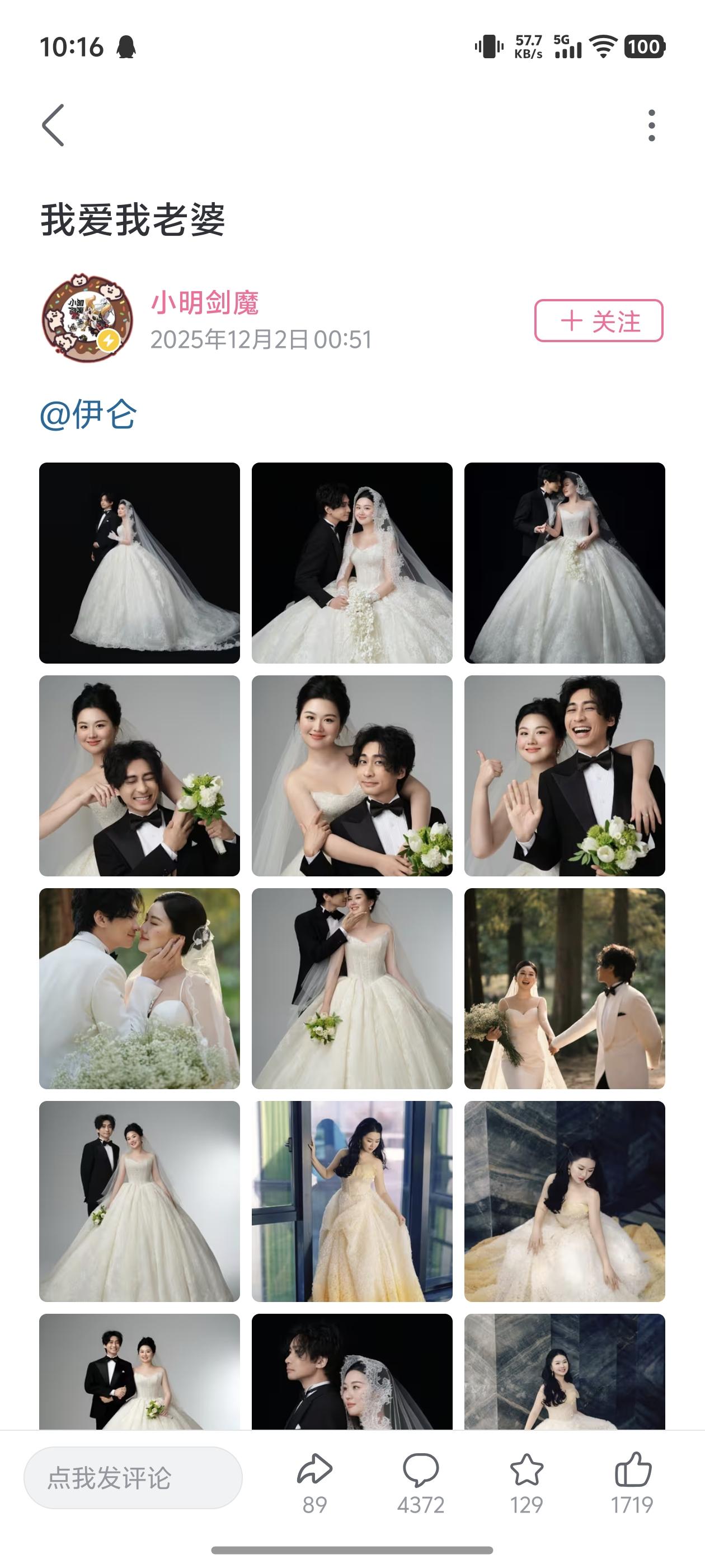 如何评价小明剑魔于12月2日发布婚纱照并配文“我爱我老婆”?