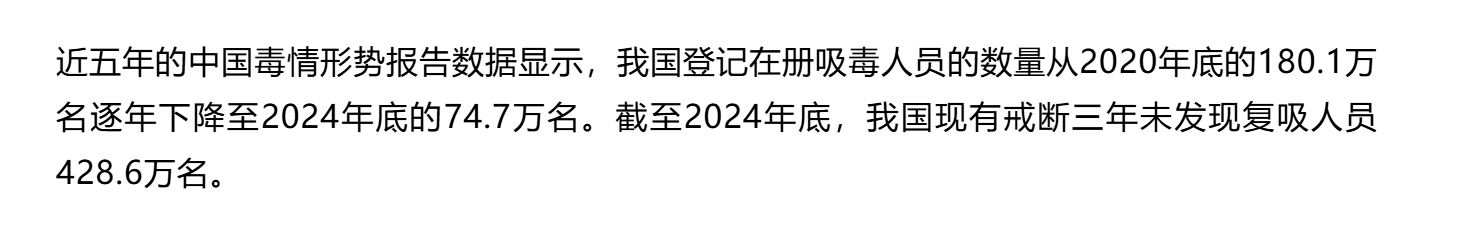为什么无论是全国禁毒办的数据还是各地的数据都表明即便吸了毒也有挽救的可能?比如国家禁毒办2024年的报告是戒断三年未发现复吸人员428.6万名;现有吸毒人员74.7万名。再比如北京戒毒管理局2023年的数据是三年未复吸率80%。