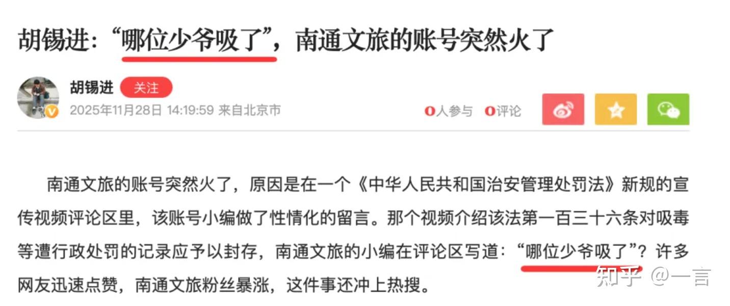 比如就拿这段时间最火的行政违法记录封存这件事,引爆舆论的无非就是南通文旅的那句“哪位少爷吸了”,然后一堆人开始讨论,进而马上有人扒出来朱征夫,说他是武汉大学教授,说他儿子是吸毒人员所以才提案要求进行违法记录封存。说这就是法学界的一些大佬想要夹带私货,为二代铺路,将来好进入体制。