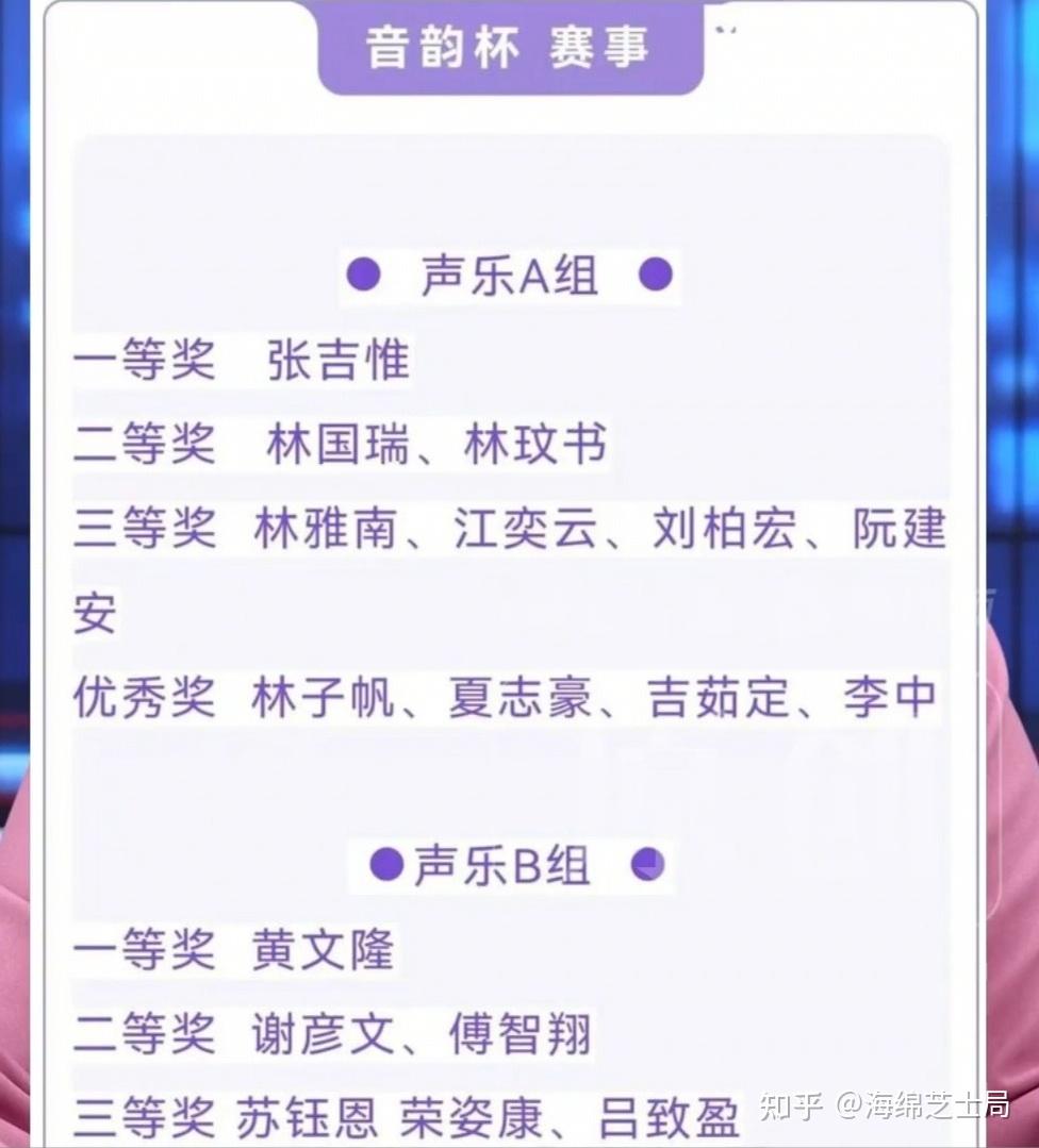 再看看这个声乐比赛,获奖的前五人,又是这几个名字。