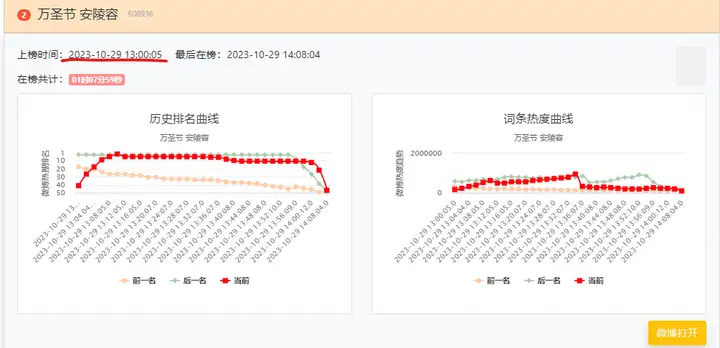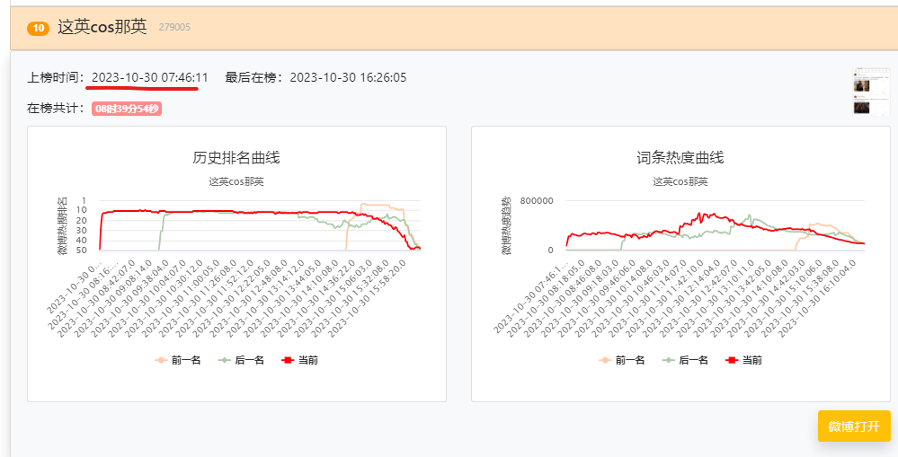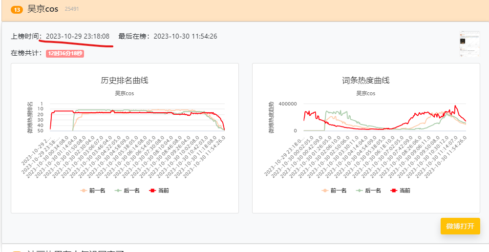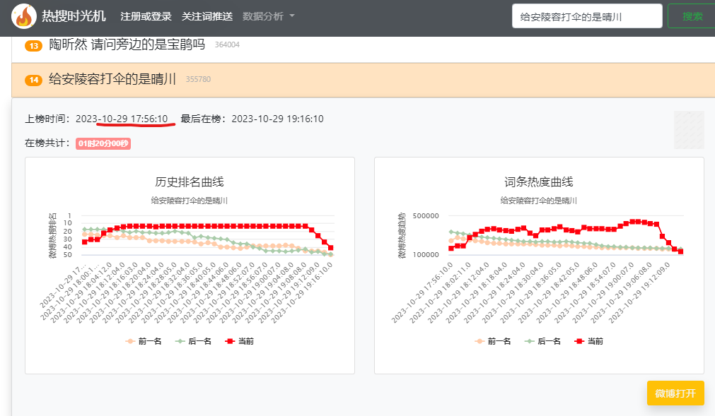 用热搜时光机截图出来,注意看时间,从10.29开始每搁几小时精准推热搜,那么多乱七八糟各种古今中外二次元的Cosplay,但是上了微博热搜的只有:那英,关晓彤,吴京,安陵容,晴川,好巧。