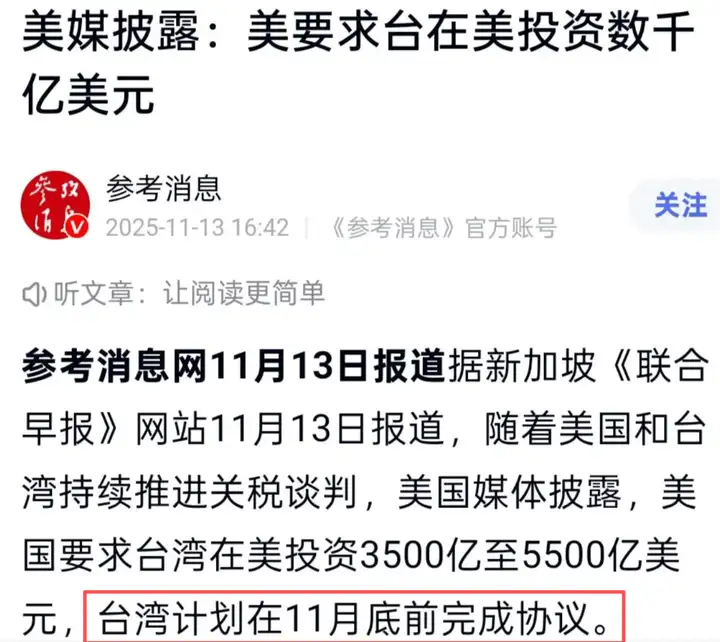 之前介绍过,懂子本来打算在11月底就和台湾地区签好贸易协定,真金白银的拿到上千亿美元投资。