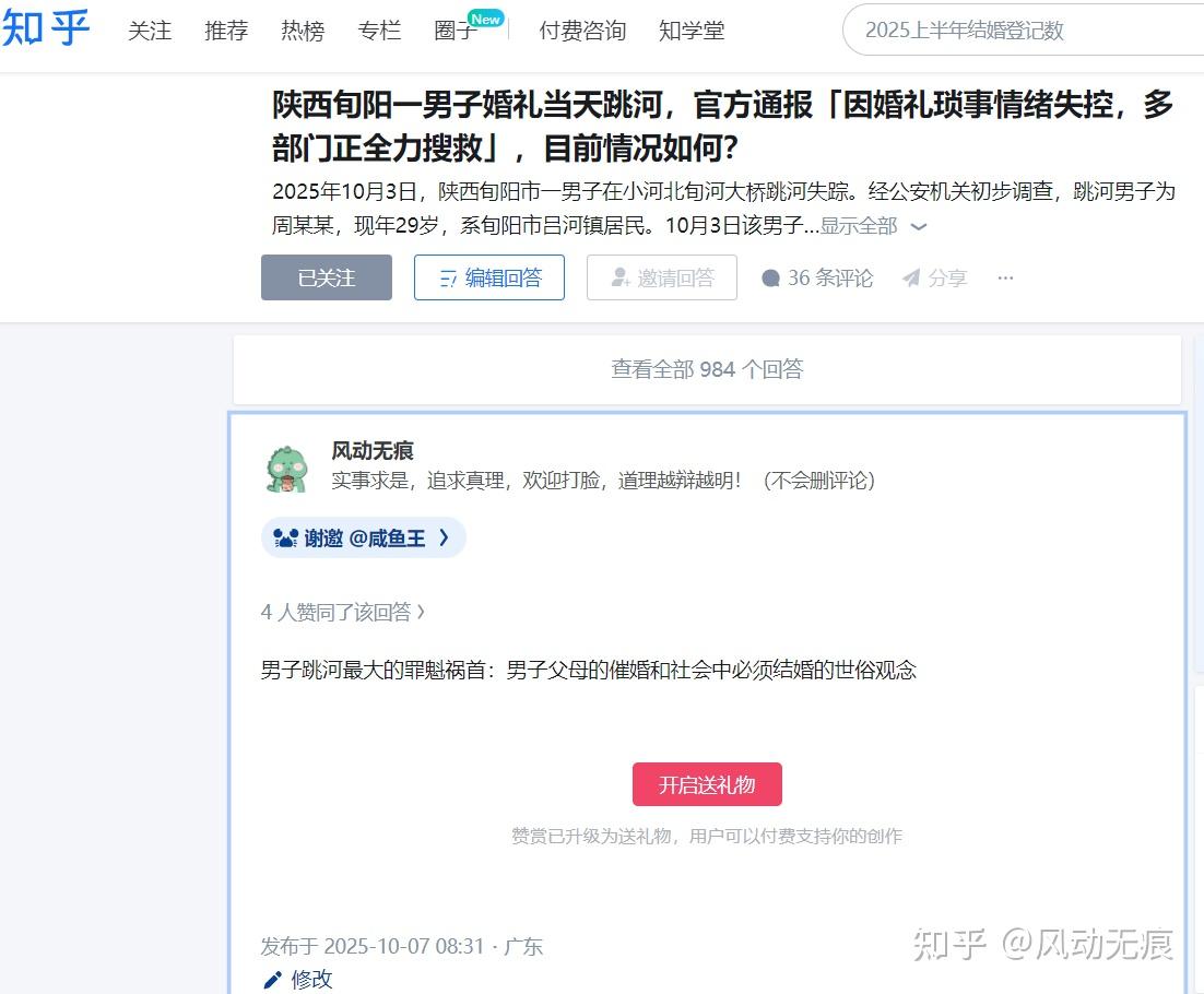 之前新郎跳河。 以上截图内容已经被河蟹了,不知道触犯了那些人的利益。 现在是新娘跳楼。 这些现象最大的罪魁祸首:父母的催婚和社会中必须结婚的世俗观念。 最后想问一句:催婚算不算家暴? 发布于 2025-12-14 13:56・广东 赞同 102875 条评论分享 收藏喜欢