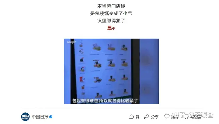 大家觉得麦当劳汉堡变小了吗?