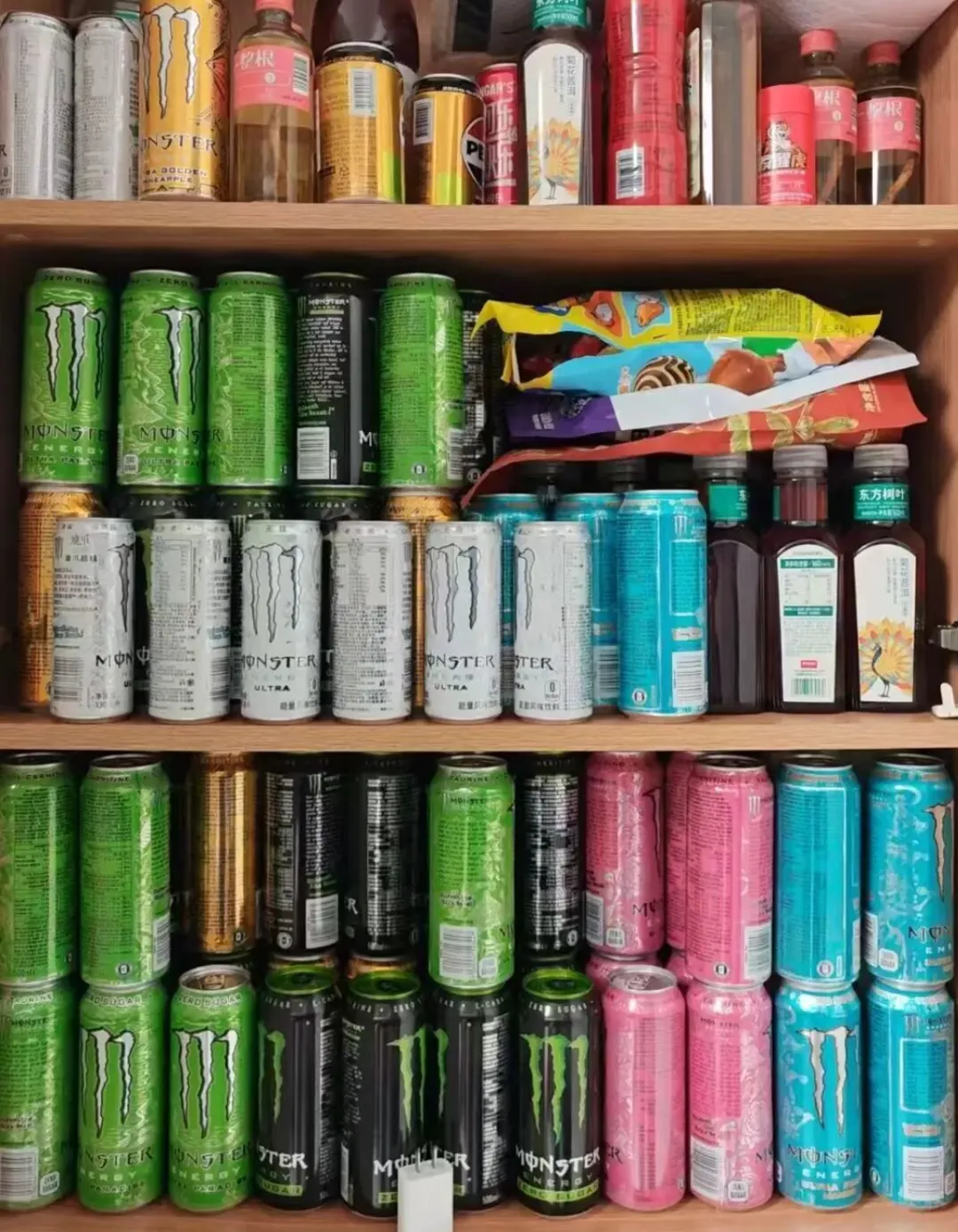 这是我的柜子,基本全是魔爪饮料,很多还是进口版的,那个劲儿大。